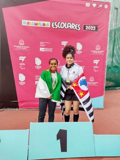 Nataxa Costa, aluna do "Escola Estadual Peixoto Gomide", Classe Bocha BC3 e sua Calheira Noeli Costa sagrou - se campeã – ouro.