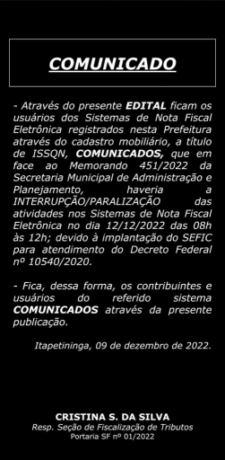 Comunicado Prefeitura Notas Fiscais Eletrônicas