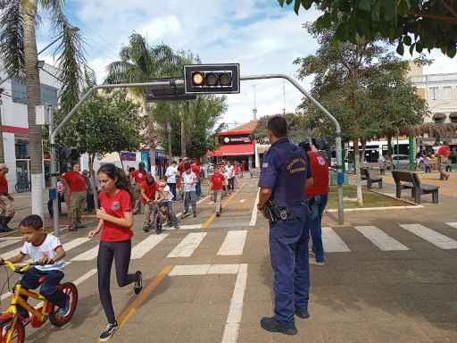 Após a palestra, as crianças e adolescentes foram com bicicletas, triciclos e patinetes na minicidade, instalada em frente ao Centro Cultural no Largo dos Amores, para colocarem em prática tudo o que aprenderam durante a palestra.