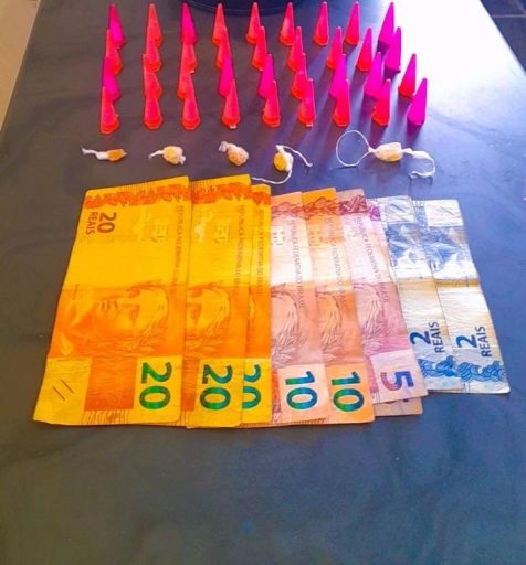Durante a revista pessoal, foram encontrados com o adolescente 36 pinos de cocaína e cinco pedras de crack já embaladas para a venda e R$ 94,00 em dinheiro. Com o outro suspeito, nada de ilícito foi localizado.