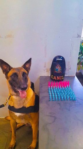 As drogas estavam escondidas atrás de um dos blocos do conjunto habitacional e foram localizadas com o auxílio da cadela farejadora Ákila.