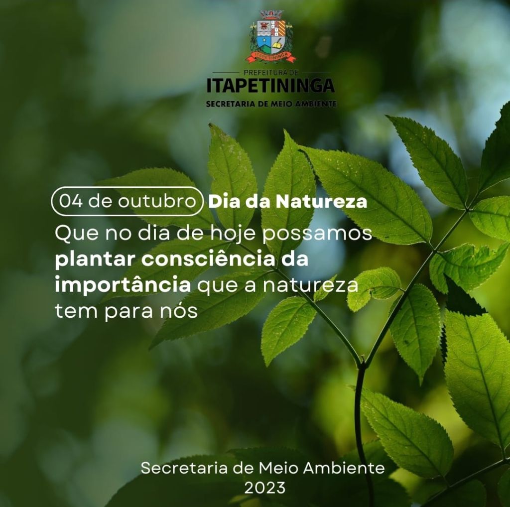 Hoje, dia 4 de outubro, o Dia da Natureza, é uma data oportuna para a reflexão sobre o impacto das ações humanas no meio ambiente. A Secretaria do Meio Ambiente de Itapetininga lembra que é da natureza que se retira os recursos necessários para a sobrevivência humana. É ela também que garante o desenvolvimento econômico fornecendo as matérias-primas necessárias para a construção de casas, de carros, de máquinas entre outros.