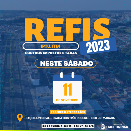 O programa permite que os juros e as multas possam ser reduzidos em até 90%. É uma excelente oportunidade para regularização fiscal, evitando a cobrança judicial. O contribuinte pode parcelar suas dívidas municipais, como IPTU, ITBI e outros impostos e taxas. A Prefeitura de Itapetininga prorrogou o Refis para 18 de novembro.