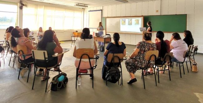 O encontro foi realizado pela equipe Técnica-Pedagógica que preceitua ser uma das atribuições centrais da função a formação continuada do Corpo Docente.