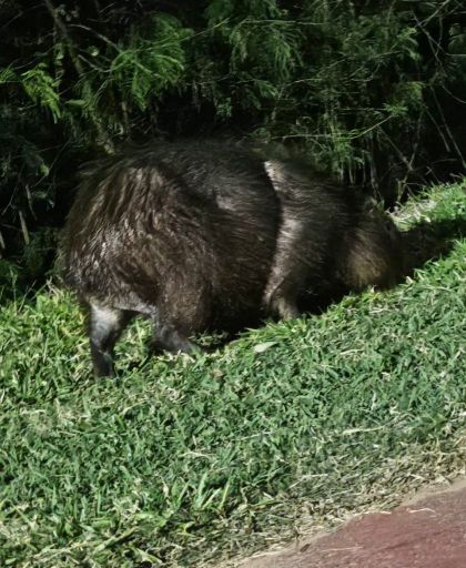 Capivaras vivem em grupos e, durante o período noturno, podem aproveitar para socializar. São animais comuns de serem vistos em áreas de ribeirões e represas, pois se alimentam de vegetação aquática e rasteira.