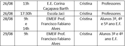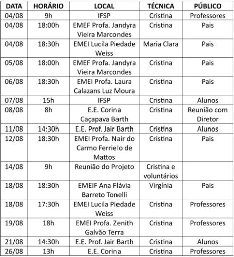 CRONOGRAMA DAS ATIVIDADES DO PROJETO FALAR É BOM - AGOSTO