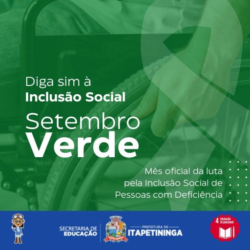 A Secretaria de Educação de Itapetininga apoia o movimento Setembro Verde, que tem como objetivo conscientizar a sociedade sobre a importância da inclusão das pessoas com deficiência em todos os espaços.